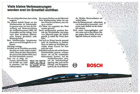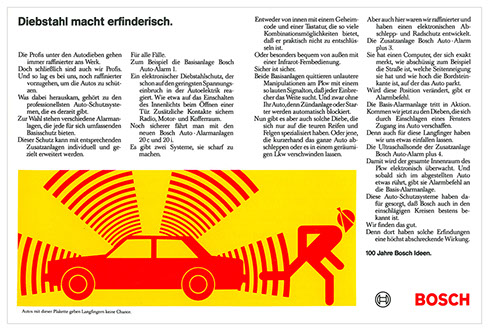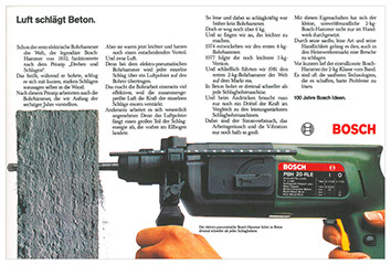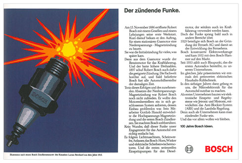 „100 jahre bosch-ideen“ war inhalt und motto unserer ersten arbeit für bosch. eigenartig, wie die disziplin der bosch-geschichten heute (30 jahre später) auf uns wirkt...