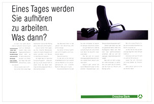 für die dresdner bank haben wir im lauf der jahre bis 2003 zwei corporate design generationen entwickelt. aus „das grüne band der sympathie“ war „die beraterbank“ geworden.