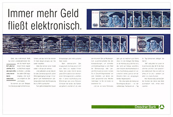 für die dresdner bank haben wir im lauf der jahre bis 2003 zwei corporate design generationen entwickelt. aus „das grüne band der sympathie“ war „die beraterbank“ geworden.