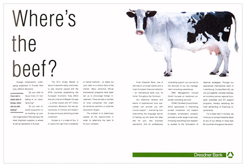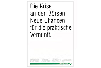 diese erste anzeige war eine schnelle reaktion auf den börsencrash 1987. zum erstenmal ging eine bank nicht in deckung, sondern zeigte sich. der erfolg: sympathie und respekt.