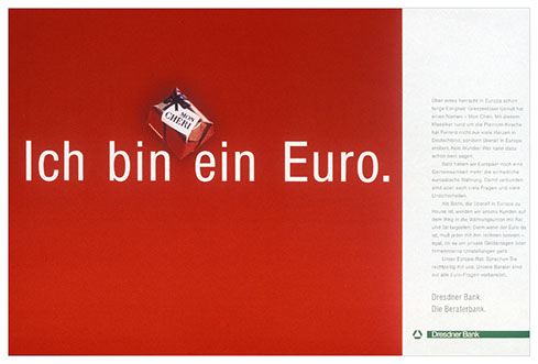 zur einführung des euro wollte die bank (als einzige bank!) ihre kunden nicht allein lassen. es gab ja allerhand zu erklären.