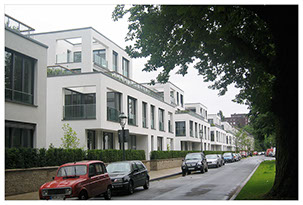 die stadt düsseldorf genehmigt der bayrischen hausbau einen erschreckend erdrückenden, hässlichen plan für wohnblocks. die anlieger wehren sich.