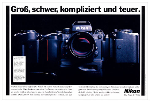 war das die zweite. (kleine anekdote: die nikon techniker haben damals im fotostudio nicht nur eine F4 in alle ihre einzelteile zerlegt, sondern danach so wieder zusammengebaut, dass alles wieder perfekt funktionierte.)