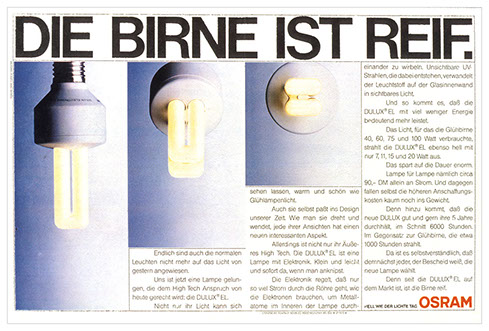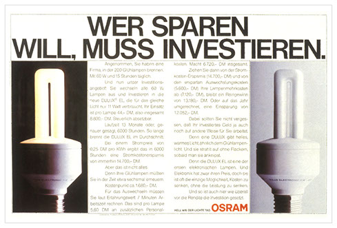 die stromsparlampe war ein echtes sparwunder, aber um ein vielfaches teurer, als eine glühbirne. dennoch hat sie sich gelohnt – aber das musste erst einmal erklärt werden.